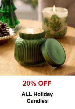 Save now! Shop in store and get 20% off on all holiday candles.
