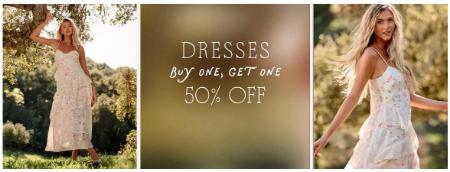 Shop in store and buy one, get one 50% off dresses for a limited time.